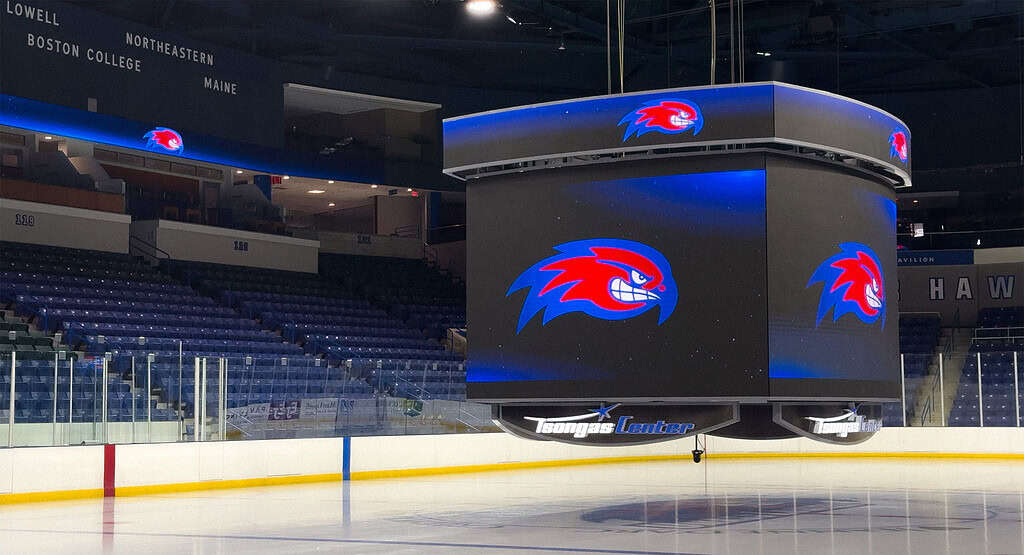 Cost varies by size, pixel pitch, and structural requirements. A typical college arena center-hung display ranges from $100,000 to $500,000 installed. For an accurate estimate, request a quote from UberDisplays for a custom proposal.