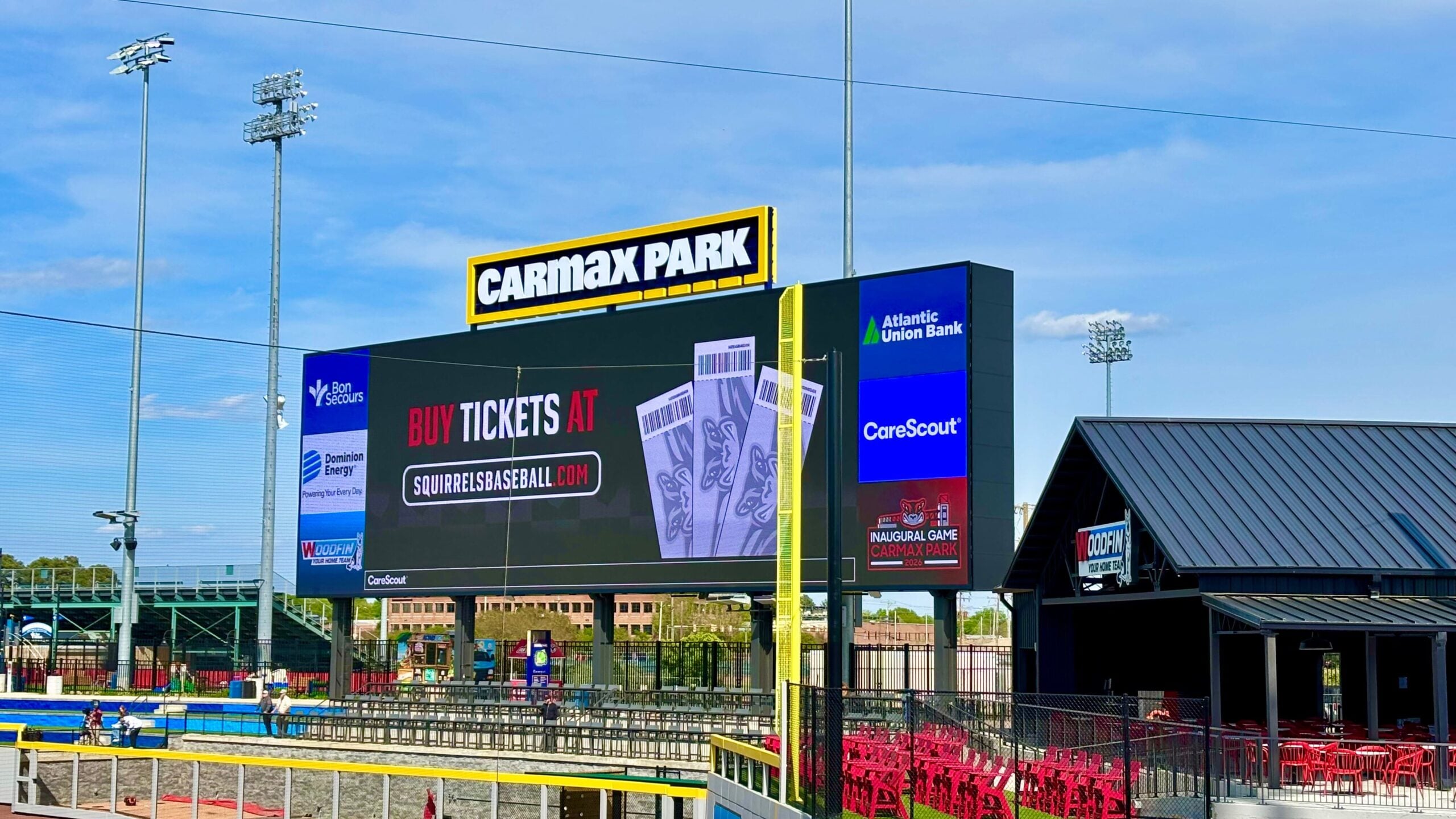 Full of style and driven by innovation, the LED screens at CarMax park features some of our most advanced LED technology. The outfield is surrounded by our patented rubberized LED product that allows home runs to bounce off without consequence. The first and third baselines are flanked with 435 linear feet of our top serviceable panels making maintenance and repair possible while standing on the upper level–no lift or ladder required. The home of the Richmond Flying Squirrels is home to some of LEDs greatest innovations. The new ball park opened April 7th, 2026 and the Richmond Flying Squirrels beat the Altoona Curve by the score of 3-2.