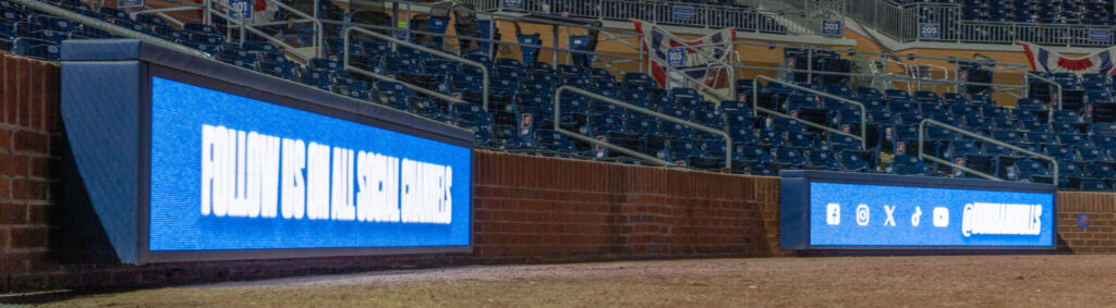 Uber Displays’ backstop LED solution was built to meet Major League Baseball standards, with the ability to absorb baseball impacts up to 150 mph. These LED panels are purpose-built to withstand collisions, offering unmatched durability in high-speed play.